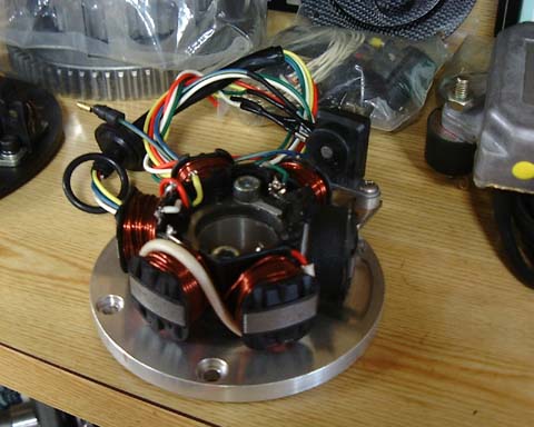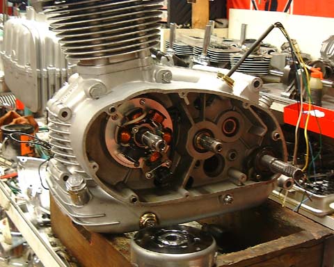 エンジン組み付けですが、今ではほとんどの車両が12V化をしているので、点火時期の調整も一緒に行います。
