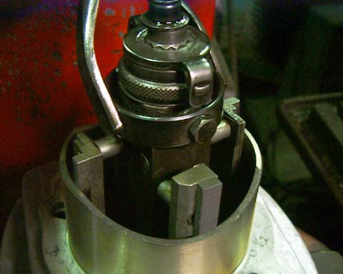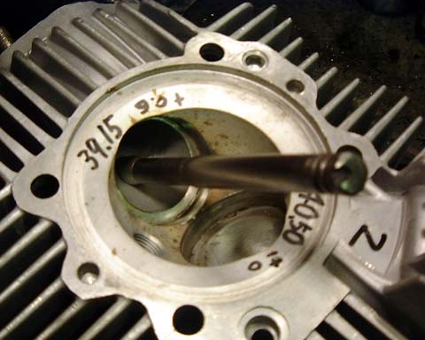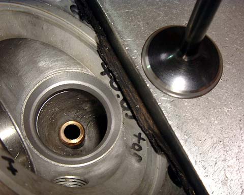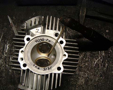 シートカット・摺合せをします。バルブに当りが付いたリングが見えます。
